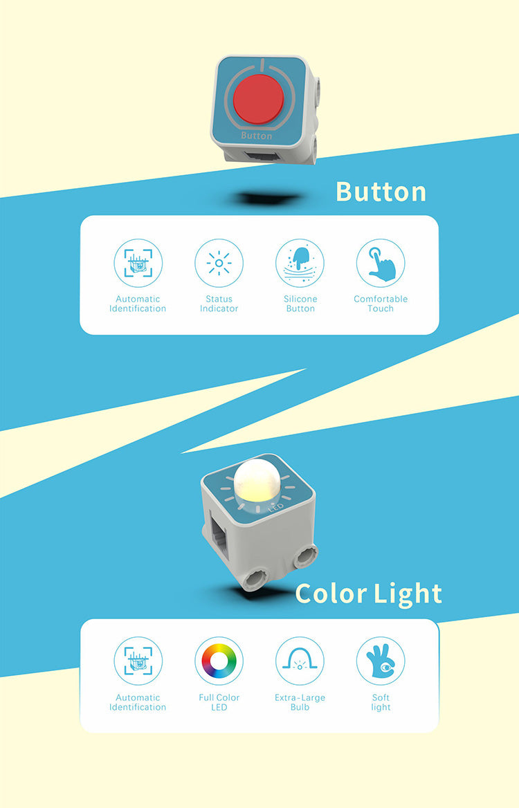 ZMROBO a -Series Programming Robot Kit is equipped with a building blocks and electronic components, as well as sets of coding cards. Through scanning a series of coding cards, kids can program without computers, which is easy to learn and popularize, and makes programming become more friendly and more interactive. Building blocks are made in precise dimensions and comfortable to touch, allowing kids to assemble and disassemble robots easily. Electronic components are ready to use once connected, including High-Precision Motor, Dot Matrix Screen, Buzzers, Color Light, Button and so on, which enable the robot to realize functions such as motion, sound and light. The kit builds the robot's skeleton and muscles through blocks, composes the robot's nervous system through electronic components, and assigns logic to the robot's behavior through coding cards. lt provides students with entry-level robot design and programming, also fosters their hands-on skills, and helps them reach their creative potential.