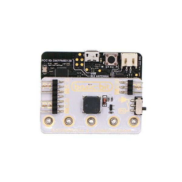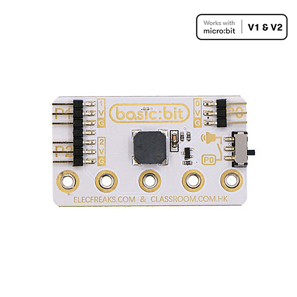 ELECFREAKS micro:bit Basic:bit is a basic microbit expansion board. It carries a buzzer and three groups of GVS pins(P0/P1/P2) on board. Each group of GVS pins separately leads out the IO port, 3V port, and GND port on micro:bit. Small size with a simple structure, it is quite enough for you to complete 98% micro:bit projects.