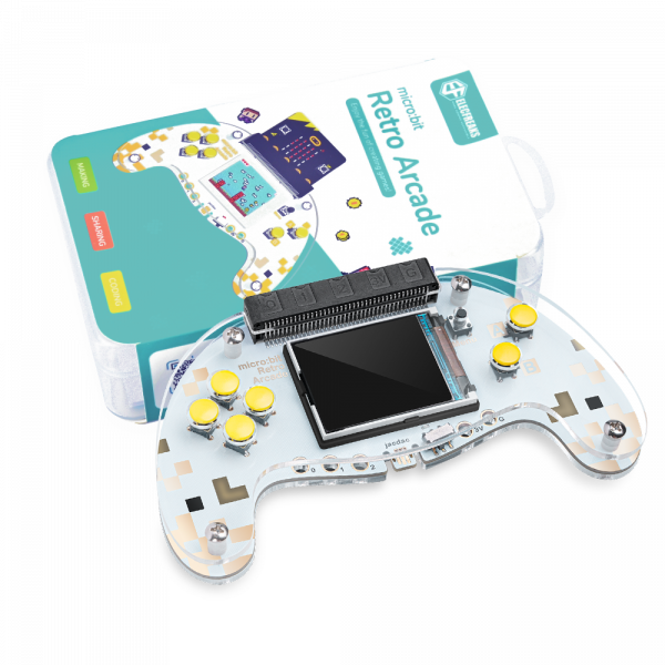The ELECFREAKS micro:bit Retro Programming Arcade is a color screen joystick expansion board for the micro:bit V2. Includes TFT 160*128 color screen, 4 directional buttons, 2 A/B buttons, and a reset button. The ELECFREAKS micro:bit Retro Programming Arcade is now used with the micro:bit V2. This runs between Microsoft Arcade's plate format and inline programs. An easy and fun way to help your child create their own games and understand the mystery behind them. It also supports custom game characters, various scenarios, and plot design with graphic programming software, making it easy for anyone to realize fun electronic works and unlimited game ideas. The ELECFREAKS micro:bit Retro Arcade can also be used as a remote control handle.